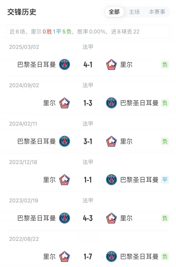 巴黎联赛5胜1负积15分,近期各赛事2连胜;里尔3胜1平2负积10分,联赛遭遇2连败。巴黎对阵里尔已连续8场不败(7胜1平)。