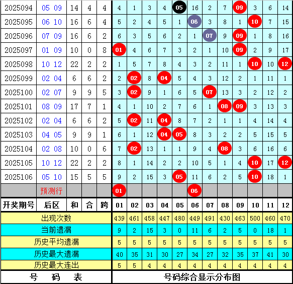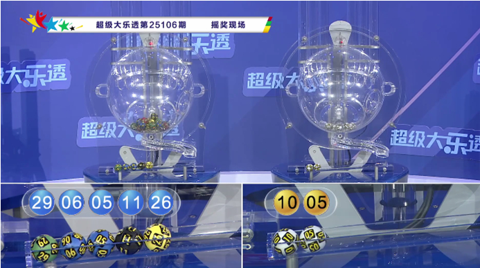 上期开奖:大乐透第2025106期开奖:05、06、11、26、29+05、10,前区012路比为1:0:4,奇偶比为3:2,五区比为2:1:0:1:1,大小比为2:3。