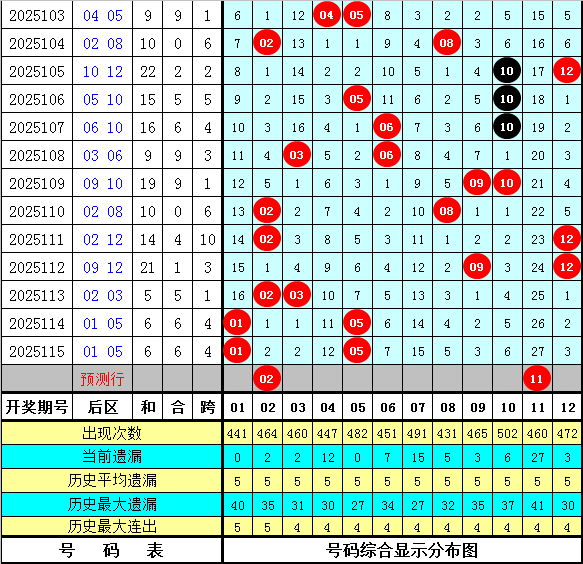 其中,后区奇偶比为15:25,大小比为17:23,012路比为9:16:13,本期后区金胆参考02。