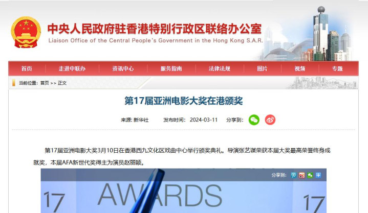 2024年3月10日,第十七届亚洲电影大奖在香港举行了颁奖典礼。