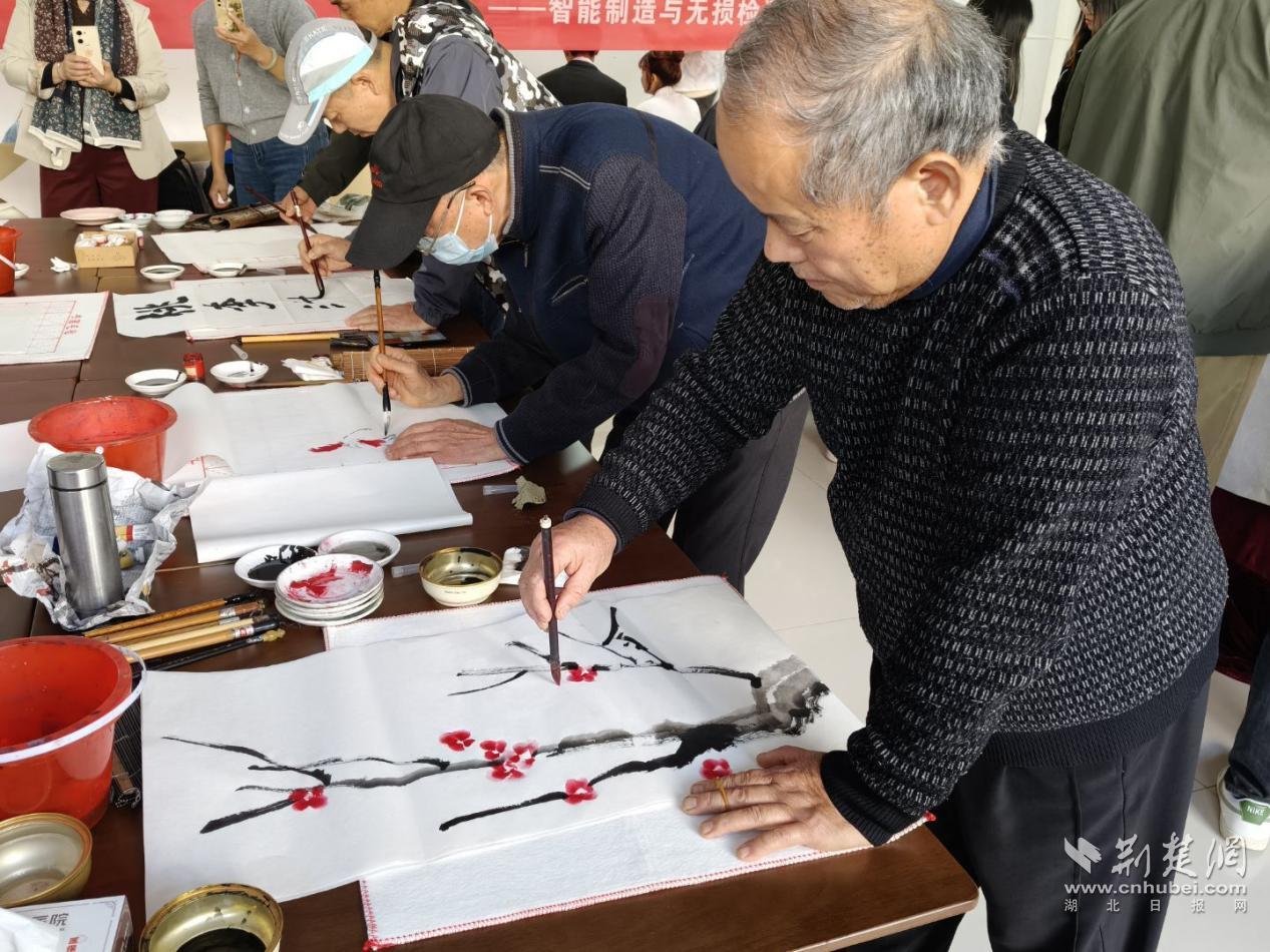 荆楚网(湖北日报网)讯(记者唐天琪 通讯员施慧丽)七十六载栉风沐雨,铸就山河锦绣;七十六载砥砺前行,书写时代华章。10月22日,武汉文理学院智能制造与无损检测学院举办“笔赞山河美·心系家国情”主题书画活动。