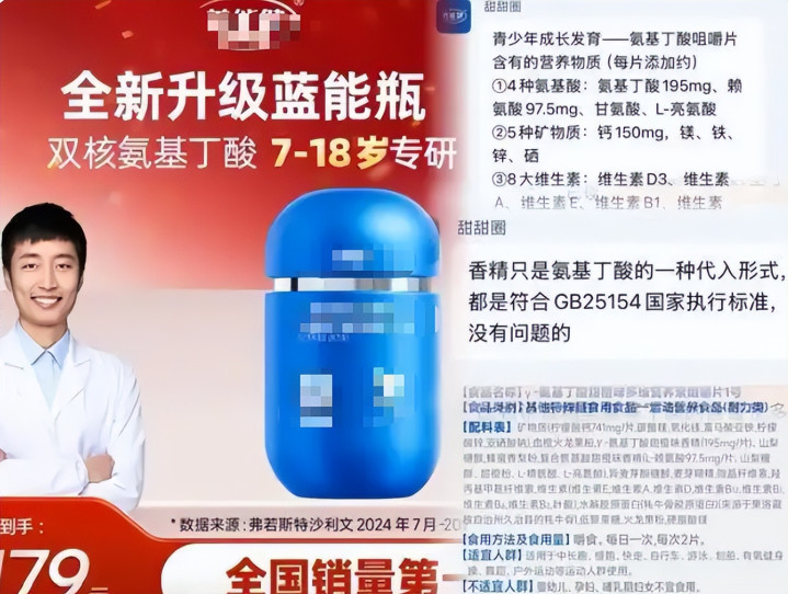 调查显示,这款产品的核心成分被宣传为“γ-氨基丁酸”。