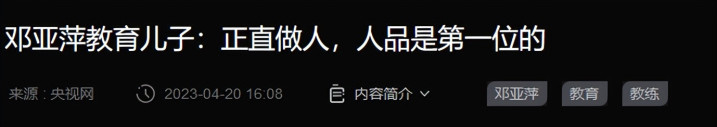 邓亚萍教育儿子:正直做人,人品是第一位的——央视网