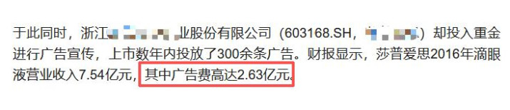 更令人咋舌的是,2016年该公司滴眼液营业收入7.54亿元。