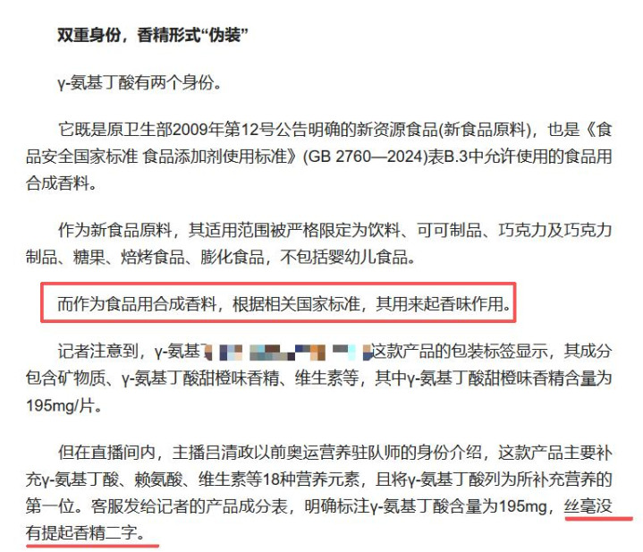 更令人震惊的是,这款产品中的γ-氨基丁酸,是以“γ-氨基丁酸甜橙味香精”的形式添加的。