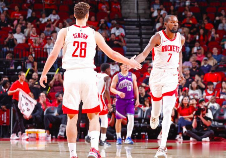 能打出这样的表现,靠的从来不是天上掉馅饼。38 岁的杜兰特,依旧是那个能定乾坤的主,本赛季场均 26 分,投篮命中率 51%,三分命中率 41%,越到关键时刻越稳,第四节的有效命中率高达 62.3%,对手怎么包夹都拦不住。之前被骂到抬不起头的申京,也终于打出了自己的价值,他在内线的牵制和策应,直接盘活了全队的进攻,高阶数据在全联盟中锋里能排进前四。乌度卡也终于不再死脑筋,调整了轮换阵容,让霍勒迪担起控球的活,把申京和杜兰特都解放了出来,整支球队一下子就活了。