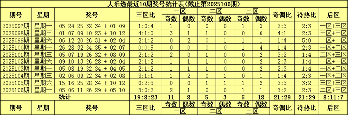 综上所述,大乐透第2025107期前区三区比看好2:2:1。