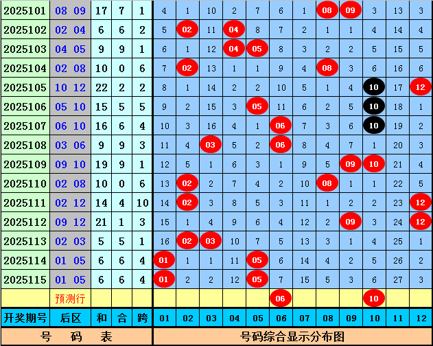 后区5码参考:05 06 09 10 12