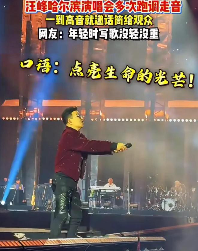 相比之下,2025年的哈尔滨站,52岁的汪峰在相同曲目上完全掉链子。