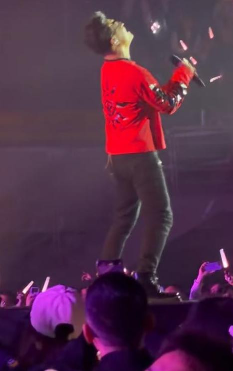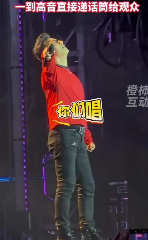 现场视频清晰捕捉到,他赶紧把话筒转向观众,让大家帮忙吼完高潮部分。