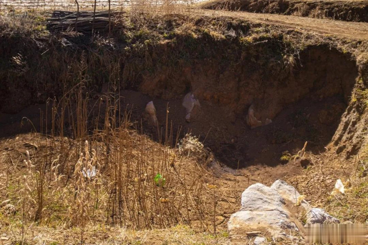 前两天随大理市的公益组织去风仪、宾川、样云交界的山区走访了一个“麻风村”,午休的时候闲不住,就在村子周围逛逛顺便看看这里的生态环境,比如有没有什么特别漂亮的野生鸟类长驻于此之类。有趣的是在追踪一对小鸟的时候,相机们在关键时刻竟然都没电了,于是连忙插上充电宝,然后尽量轻手轻脚地跟随它们的踪迹而行。结果在翻跃几个山坡后,才发现自己已然回到村子旁边的“平原田野”,接着就看见了这个大土坑。