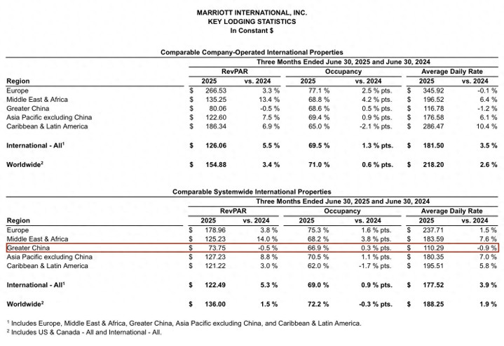 一个多月前,万豪国际披露的2025年第二季度业绩报告,像是提前为这次“卫生事件”撕开了一道裂隙。