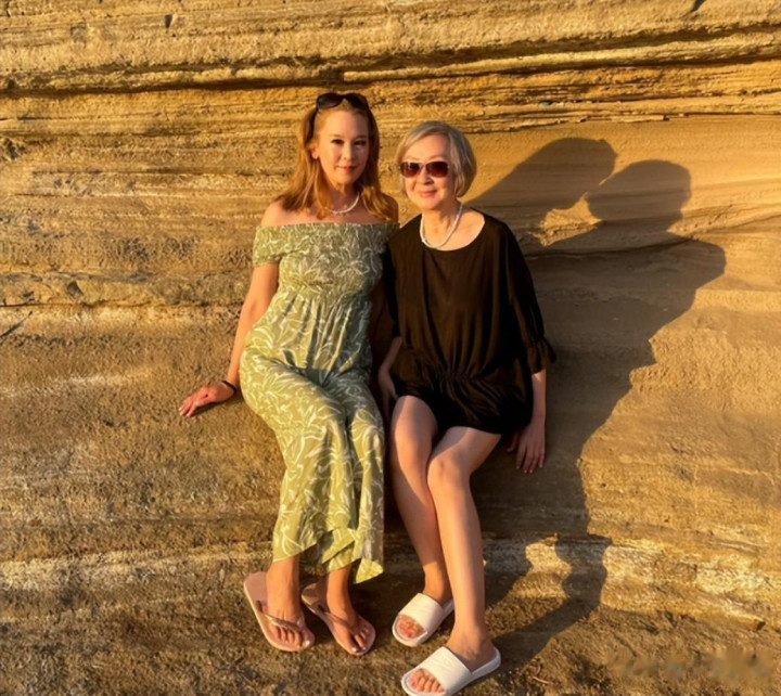2022 年姐妹同框照中,母女二人的面部线条与气质神态高度相似,这也印证了家族基因的强大。